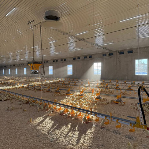 Loyiha doirasida SKOV kompaniyasi fabrikkaning ventilyatsiya, isitish va mikroiqlim boshqaruv tizimlarini ta’minlaydi. Bu yechimlar har bir gala uchun barqaror harorat va havo almashinuvini ta’minlab, qushlar sog‘lom o‘sishiga sharoit yaratadi.